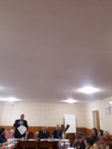 Відкрив засідання Голова обласної організації Профспілки Василь Когут і поінформував про дії обласної організації Профспілки на 2016-2020 роки. Наголосив, що сьогодні, як ніколи, постає завдання активізації роботи щодо системного використання та вдосконалення форм і методів ведення соціального діалогу на рівні ОТГ, району, міста, області. Потрібен новий імпульс і активне використання таких форми діалогу, як ділові наради, зустрічі, перемовини, консультації з депутатським корпусом, представниками виконавчої влади та управління на місцях, а, в разі необхідності, миттєве застосування активних форм відстоювання соціально-економічних прав та інтересів членів Профспілки. На покращення умов праці та навчання членів Профспілки спрямовано колективно-договірне регулювання трудових прав і соціально-економічних інтересів. Визначним у 2016 році стало схвалення на IV пленумі комітету обласної організації Профспілки нової Обласної галузевої угоди на 2016-2020 роки, яку підписано Сторонами 26 грудня 2016 року. Здійснено її повідомну реєстрацію в Департаменті праці та соціального захисту населення Житомирської міської ради 30 грудня 2016 року за № 171.