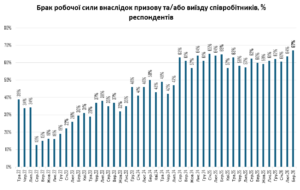 За даними дослідження, проблема нестачі працівників залишається одним із найгостріших викликів для підприємств і 67% українського бізнесу потерпає від браку працівників. Йдеться насамперед про брак кваліфікованих кадрів, але й пошук працівників загалом для багатьох роботодавців стає дедалі складнішим. Війна, міграція, мобілізаційні процеси та структурні зміни на ринку праці продовжують посилювати цей тиск.